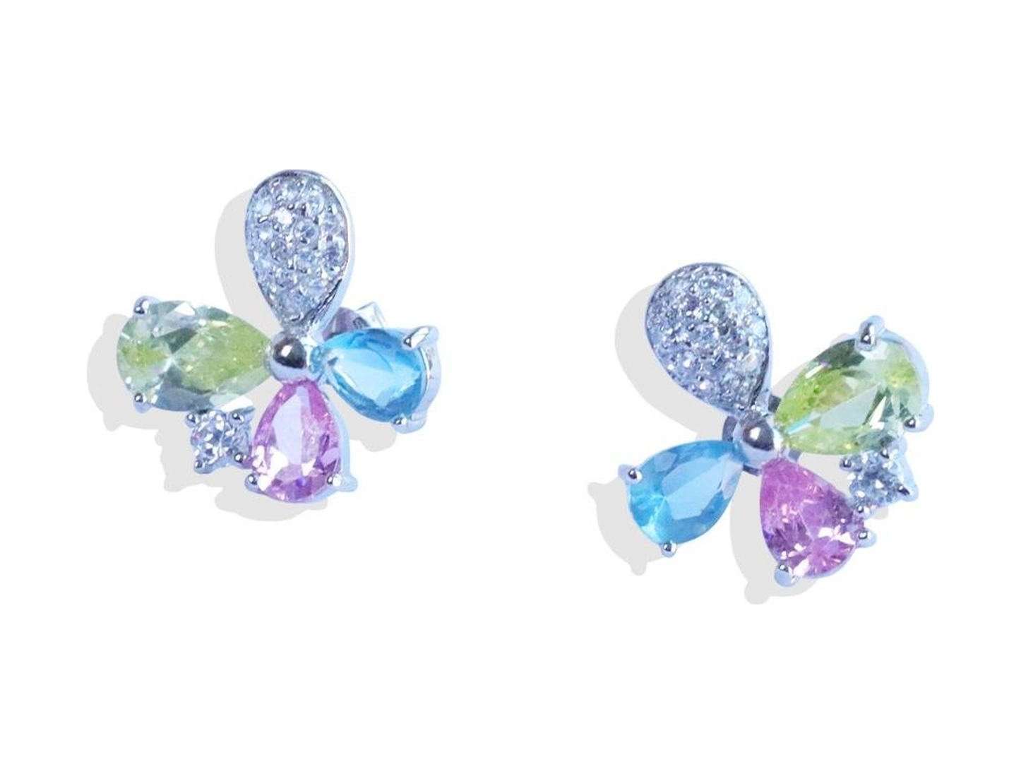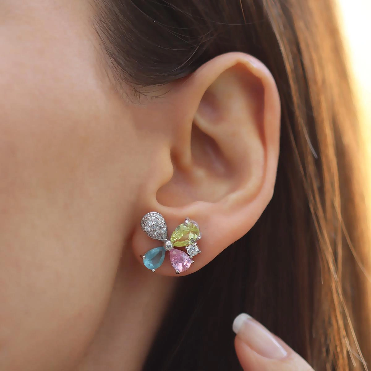 Renkli Kelebek Zirkon Taşlı Gümüş Küpe Gümüş