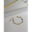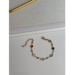 Renkli Taş Detaylı Altın Kaplama Bileklik Zarif Kadın Takı Çok Renkli