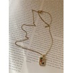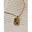 Renkli Taşlı Kare Çelik Kararmaz Gold Kolye Altın