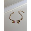 Renkli Taşlı Yıldız Figürlü Altın Kaplama Kadın Çelik Bileklik Altın