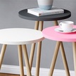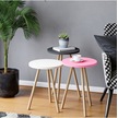 Renkli Üçlü Zigon Sehpa Ahşap Ayaklı Yuvarlak Pastel Tasarım Pembe Beyaz Gri