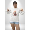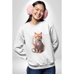 Renkli Yağlı Boya Kedi Unisex Beyaz Baskılı Sweatshirt Beyaz