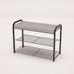 Retohome 2322 Metal 3 Katlı Minderli Ayakkabılık ve Çok Amaçli Raf Siyah