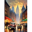 Retro Arabalar Ve Şehir Tasarım Ahşap Tablo 35cm X50cm