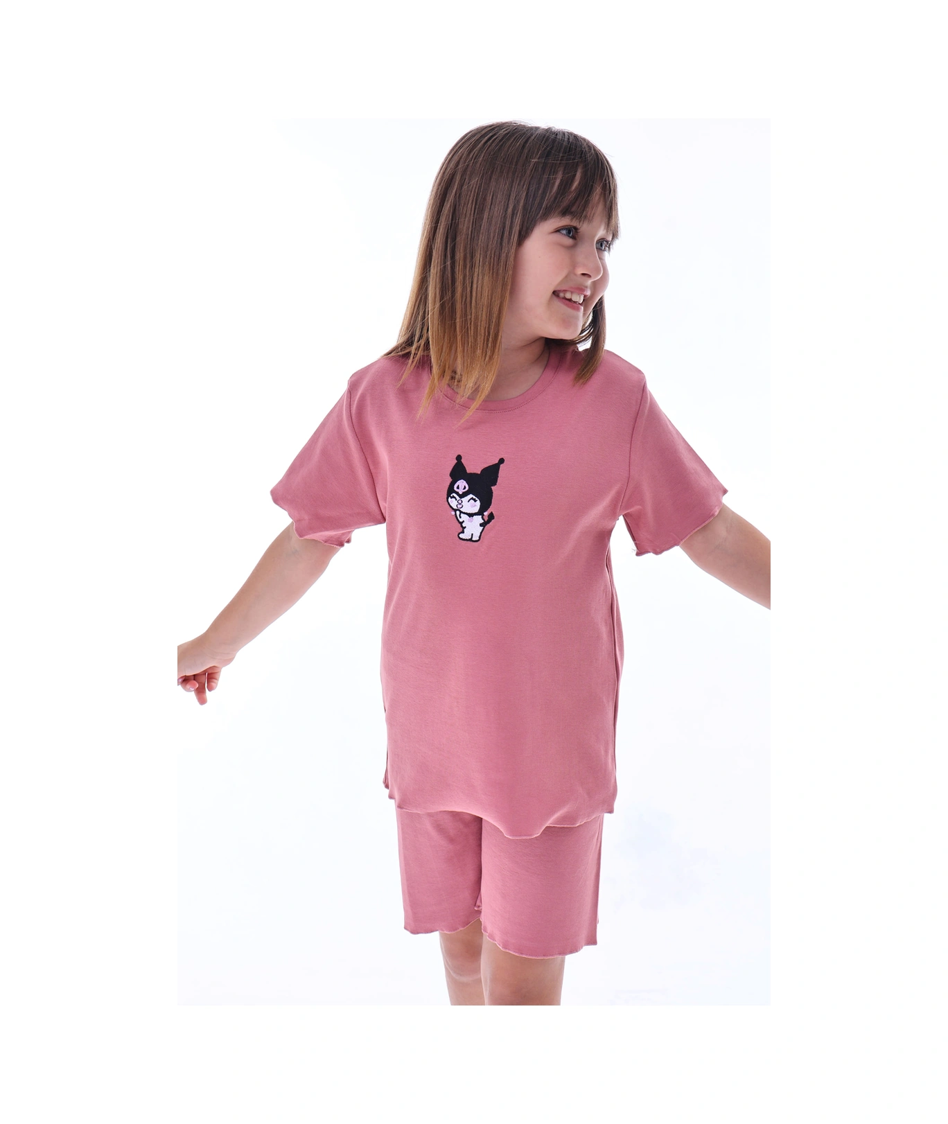 Ribana Beybi Overlok Detaylı Kuromi Nakışlı Alt-üst Takım Kiremit