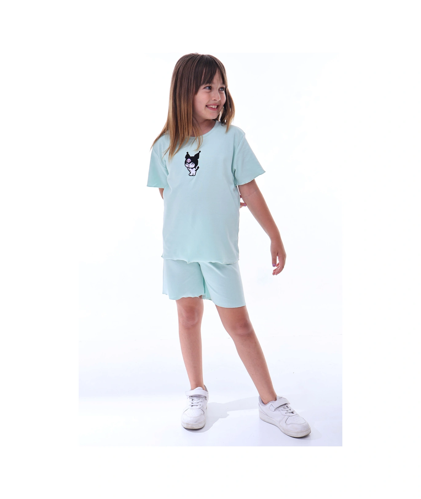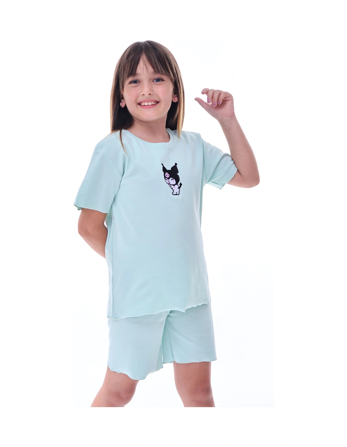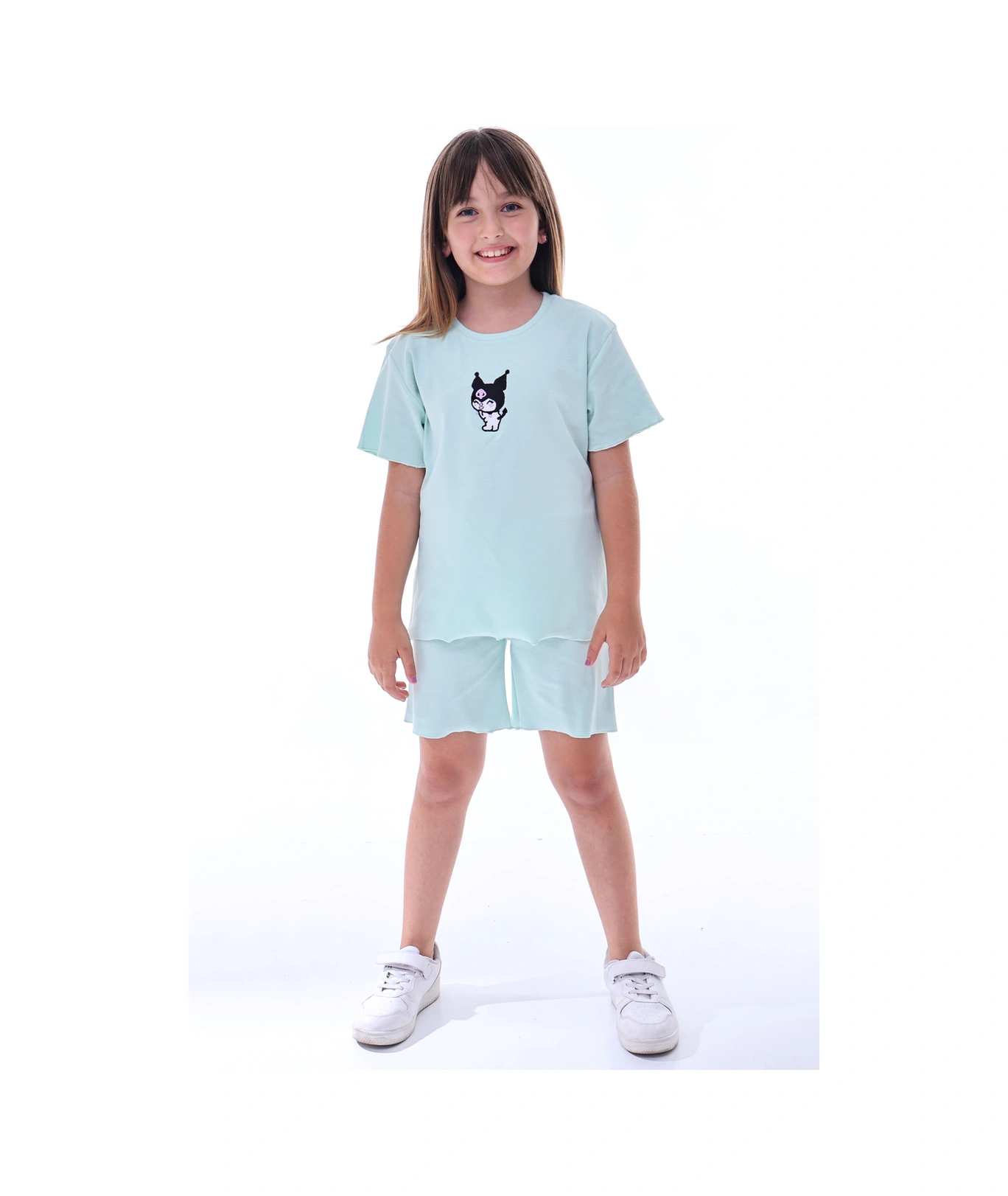 Ribana Beybi Overlok Detaylı Kuromi Nakışlı Alt-üst Takım Su Yeşili