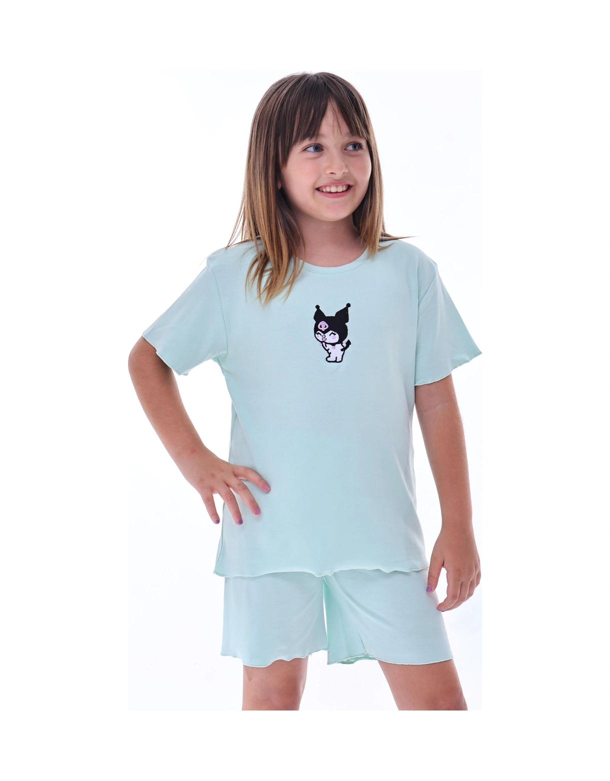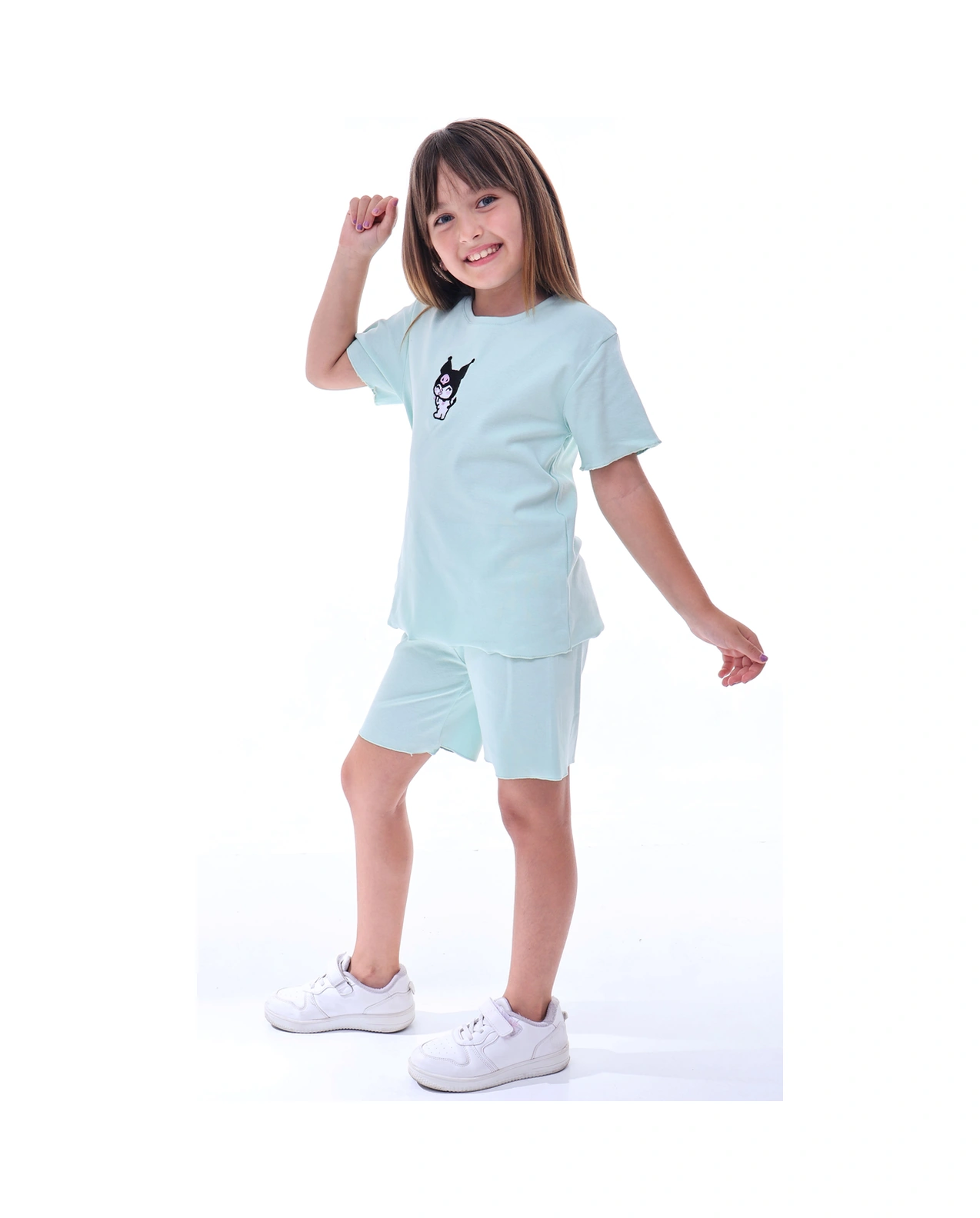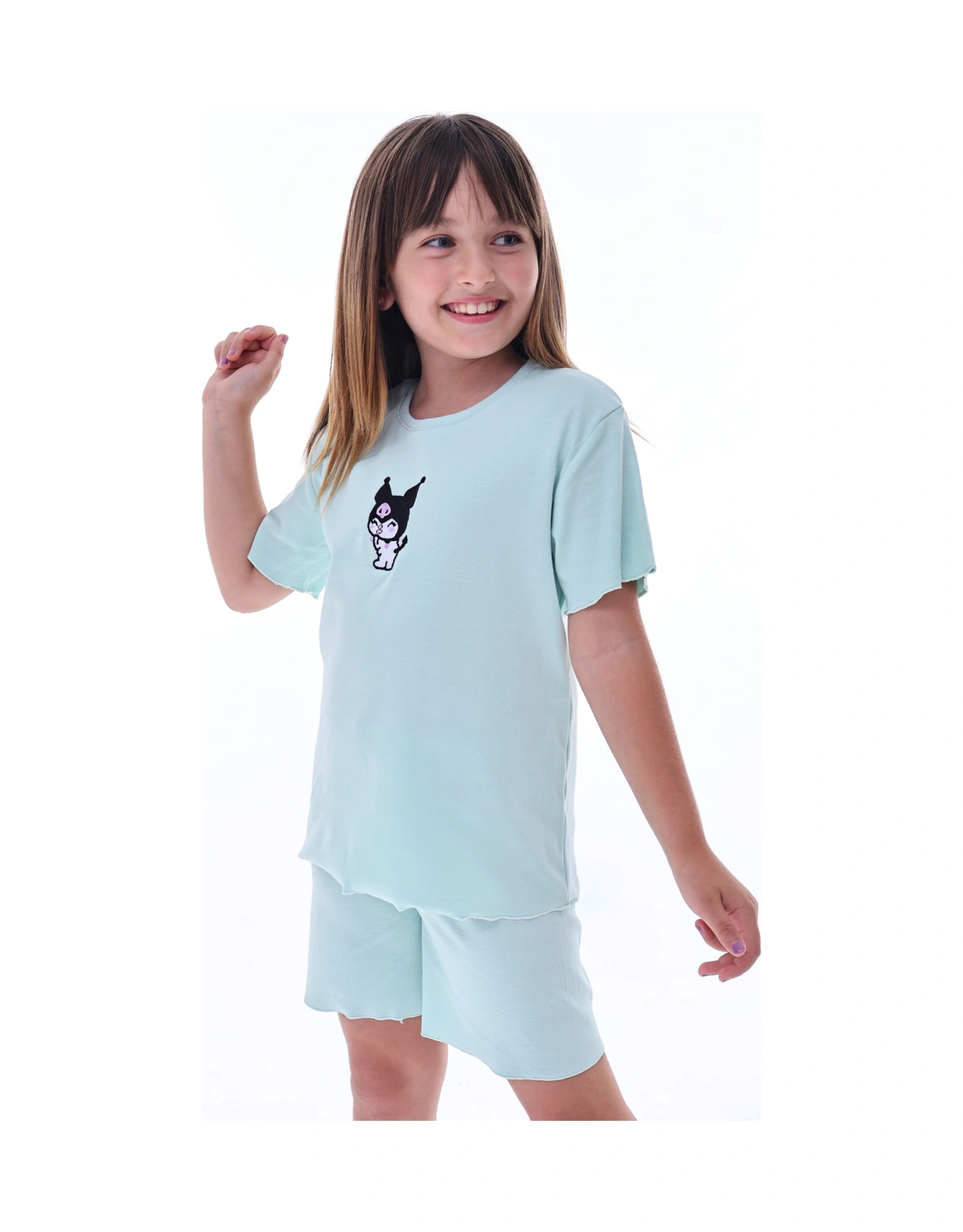 Ribana Beybi Overlok Detaylı Kuromi Nakışlı Alt-üst Takım Su Yeşili