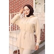 Tesettür İkili Takım Uzun Tunik Bol Paça Pantolon 4006-bej Bej