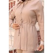 Tesettür İkili Takım Uzun Tunik Bol Paça Pantolon 4006-bej Bej