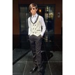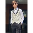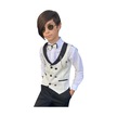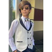 Riccotarz Erkek Çocuk Şal Yaka Düğme Detaylı Beyaz Cepken Yelek Gabardin Gömlek Takım Elbise Beyaz