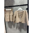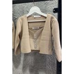 Riccotarz Kız Çocuk Askılı Bluz Hırka Ve Elmas Taş İşlemeli Cepli Bej Triko Etekli Takım Bej