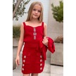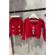 Riccotarz Kız Çocuk Askılı Bluz Hırka Ve Elmas Taş İşlemeli Cepli Bordo Triko Etekli Takım Bordo