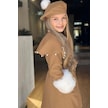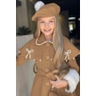Riccotarz Kız Çocuk Boydan Yakası İnci Taş İşlemeli Şal Detaylı Kemerli Bej Kaşe Bej