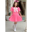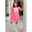 Riccotarz Kız Çocuk Göğsü Fiyonk Detaylı Eteği Pliseli Pembe Elbise 001