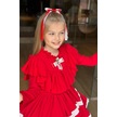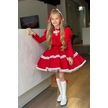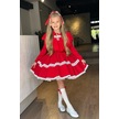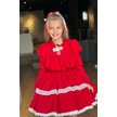 Riccotarz Kız Çocuk Göğsü Ve Yakası Fırfırlı Eteği Pliseli Dantel Şerit Detaylı Kırmızı Elbise Kırmızı