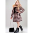 Riccotarz Kız Çocuk Kapüşonlu Peluş Detaylı Kare Desenli Pembe Kaban Pembe