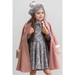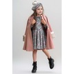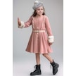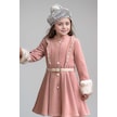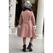 Riccotarz Kız Çocuk Kazayağı Desen Elbise Kolları Peluş Ve Omuzları İnci İşleme Kemerli Pembe Kaşe Kaban Pembe