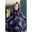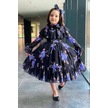 Riccotarz Kız Çocuk Kolları Transparan Ve Yakası Fırfırlı Üzeri Çiçek Desenli Piliseli Mor Elbise Mor