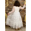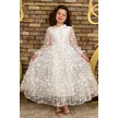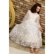 Riccotarz Kız Çocuk Kolları Ve Yakası Şeffaf Tüllü Ve Yaprak Detaylı Beyaz Elbise Beyaz