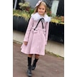 Riccotarz Kız Çocuk Kürk Yakalı Önü Çiçek Ve Elmas Taş Detaylı Pudra Kaşe Pudra