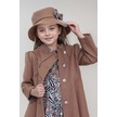 Riccotarz Kız Çocuk Leopar Desen Elbise Taş İşleme Yaka Boydan Düğme Ve Kemer Detaylı Kahverengi Kaşe Kaban Kahverengi