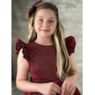Riccotarz Kız Çocuk Omzu Fırfırlı Parıldayan Bordo Elbise 001
