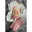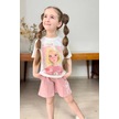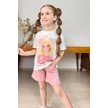 Riccotarz Kız Çocuk Papatya Ve The Beauty Yazı Baskılı Penye T-shirt Pudra Şortlu Takım Pudra