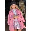 Riccotarz Kız Çocuk Üzeri Dantel İşlemeli Elbise Çift Cep Detaylı Kemerli Pembe Trençkot Pembe