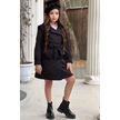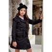 Riccotarz Kız Çocuk Üzeri Dantel İşlemeli Elbise Çift Cep Detaylı Kemerli Siyah Trençkot Siyah