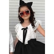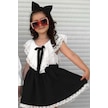 Riccotarz Kız Çocuk V Yaka Omuzları Ve Etek Ucu Dantel İşlemeli Siyah Elbise Siyah