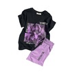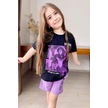 Riccotarz Kız Çocuk Wednesday Baskı Figürlü Ve Yazı Baskılı Penye T-shirt Lila Şortlu Takım Lila