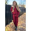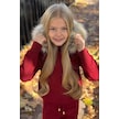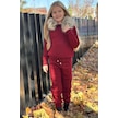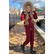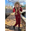 Riccotarz Kız Çocuk Yakası Çıkarılabilir Kürklü Kazak Çift Cepli Triko Bordo Alt Üst Takım Bordo