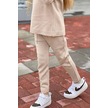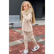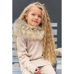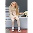 Riccotarz Kız Çocuk Yakası Çıkarılabilir Kürklü Kazak Çift Cepli Triko Ekru Alt Üst Takım Ekru