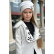 Riccotarz Kız Çocuk Yakası Kürk Ve Yonca Detaylı Etekli Ekru Kaşe Ekru