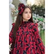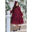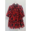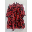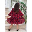 Riccotarz Kız Çocuk Yakası Ve Omuzları Fırfır Detaylı Çiçek İşlemeli Pliseli Kırmızı Elbise Kırmızı