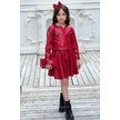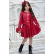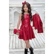 Riccotarz Kız Çocuk Zincir Detaylı Ceket Beli Manşetli Etek Ve Croplu Kırmızı Etekli Takım Kırmızı