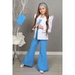 Riccotarz Kız Çocuk Zincir Ve Omuzu Fırfırlı Blazer Ceket Ve İspanyol Paça Mavi Pantolon Alt Üst Takım 001