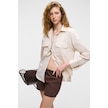 Kahverengi Yakası Fırfırlı Kuşaklı Saten Gömlek Kahve