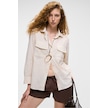 RIGO Kadın Gömlek Yaka Uzun Kol Regular Uzun İnce Krem Gömlek