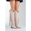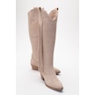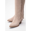 Rios Bej Hakiki Deri Süet Püsküllü Kadın Kalın Topuklu Çizme Bej Süet