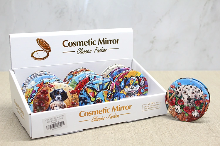 River World El Aynası Yuvarlak İnce Taşlıtasarımı Sevimli Köpek Çok Renkli