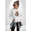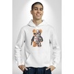 Robot Ayı Güneş Gözlüğü Kadın Erkek Beyaz Kapüşonlu Sweatshirt Hoodie Beyaz