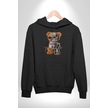 Robot Ayı Güneş Gözlüğü Kadın Erkek Siyah Kapüşonlu Sweatshirt Hoodie Siyah