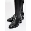 Rochos Siyah Cilt Streç Detaylı Hakiki Deri Kadın Çizme Siyah Mat