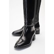 Rochos Siyah Rugan Streç Detaylı Hakiki Deri Kadın Çizme SİYAH RGN