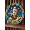 Roket Ve Uzay Temalı Çocuk Mdf Duvar Saati 3d Görünümlü, 2d Hd Baskı, Sessiz Mekanizma Sdw236 Renkli