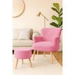 Roma Berjer + Puf Set - Welsoft Yumuşak Kumaş - Ahşap Ayak - Pembe Pembe