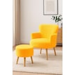 Roma Berjer + Puf Set - Welsoft Yumuşak Kumaş - Ahşap Ayak - Sarı Sarı