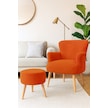Roma Berjer + Puf Set - Welsoft Yumuşak Kumaş - Ahşap Ayak - Turuncu Turuncu