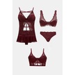 Roma Bordo 4'lü Dantelli Sütyen, Babydoll, Külot Çeyiz Seti Bordo